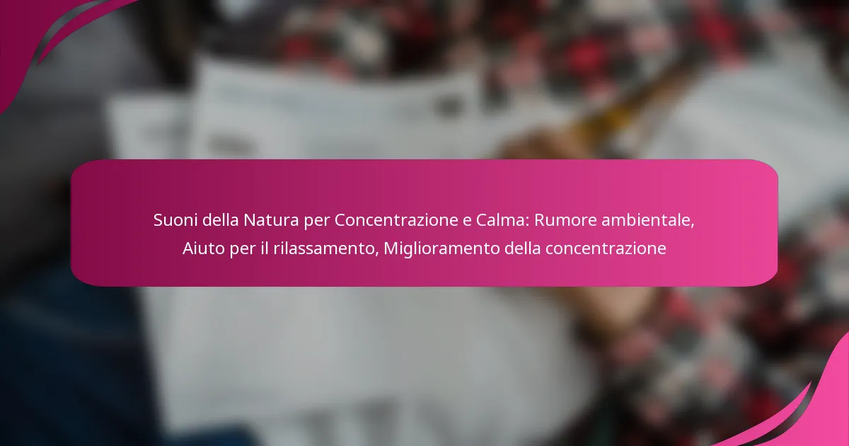 I suoni della natura, come la pioggia leggera, le onde dell’oceano o il canto degli uccelli, creano uno sfondo ambientale che può migliorare la concentrazione e favorire un senso di calma. Incorporand...